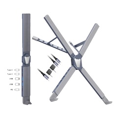 Nieuwste Multifunctionele Aluminium Draagbare En Opvouwbare Laptop Standaard Met 5 Poort Usb Hub Verstelbare Laptop Riser