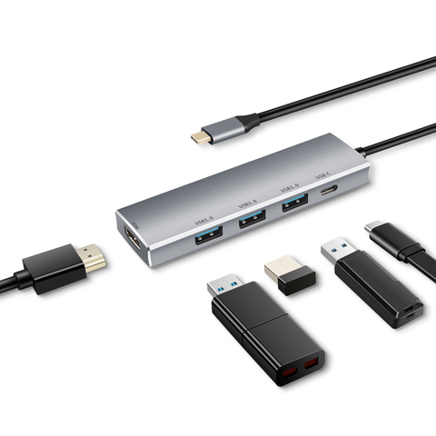 מהירות גבוהה 5 ב 1 מולטיפורט אלומיניום 3 יציאות usb3.0 יציאת hd 4k * 2k usb c pd לטעינה סוג c